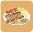 280 گرم میکس گوسفندی و گوساله مزه دار شده، بادمجان، دورچین